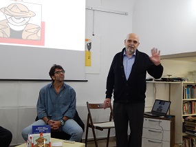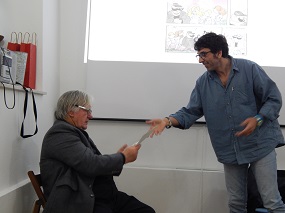 30. maj 2019 - Slovenski dnevi knjige 2019 - Santi-Partljič: Moj ata, socialistični kulak. - Že kar nekaj časa je minilo, odkar je izšel strip Santiaga Martina Sanchéza po dramskem besedilu Toneta PartljičaMoj ata, socialistični kulak. Predstavili smo ga v Literarni hiši Maribor s prisotnostjo obeh avtorjev. Tone Partljič je povedal, kako je ob pripravljanju stripa spremenil pogled na ta žanr, Santi pa je govoril o svojem klasičnem videnju stripa in o motivih, ki so ga vodili pri uprizoritvi dela Moj ata, socialistični kulak, za katerega razmišlja, da bi ga prevedel v španščino. Podaril je Tonetu Partljiču tudi nekaj risb iz svojega stripa.