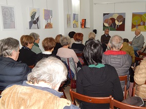 18. februar 2026 - Odprtje razstave Polonce Kitak Mir v krošnjah - V galeriji RRRudolf smo ob 18. uri odprli razstavo likovnih del Polonce KitakMir v krošnjah. Odprtje sta pričeli z branjem poezije razstavljajoče slikarka Polonca Kitak iz Šmarja pri Jelšah in Milojka Komprej-Bačovnik, pesnica in prozaistka iz Šoštanja, ki je otvoritev vodila. Milojka Komprej-Bačovnik je zastavila nekaj vprašanj o nastajanju likovnih del za to razstavo. Razstavo je odprl Marjan Pungartnik.